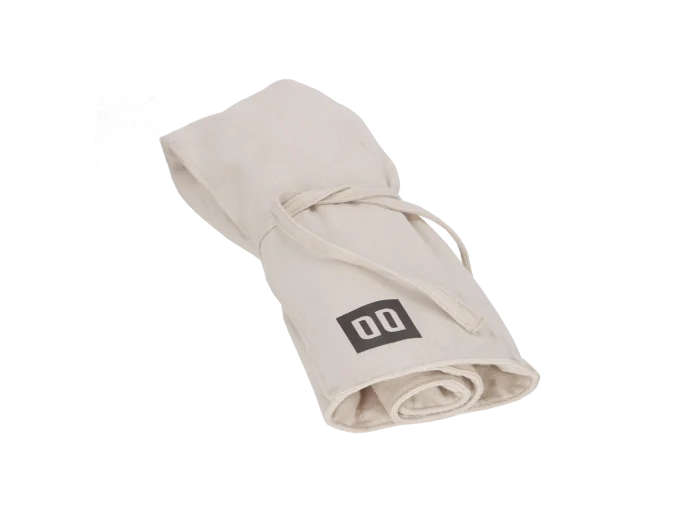 Service de couverts avec sac de rangement en toile facile à enrouler et à ranger.