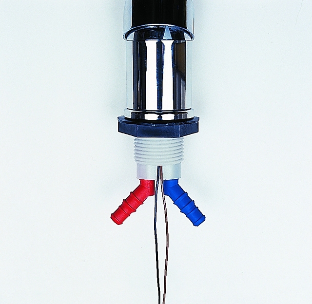 Mitigeur céramique UT avec microrupteur et raccord sous plan ½” pour raccorder un tuyau de douche. Conçu comme une robinetterie domestique. La cartouche céramique éprouvée en laiton garantit une qualité constante. Très économe en consommation d’eau grâce à l’ajustement précis de la température et du débit !