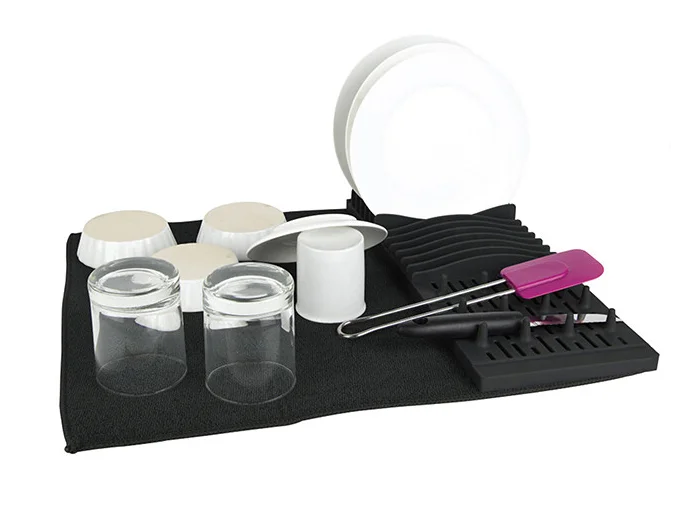 Égouttoir pliable avec tapis absorbant en microfibre et support plastique modulable