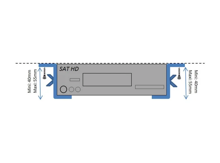 Support universel permettant la fixation du démodulateur dans votre véhicule. Hauteur réglable de 40 à 55 mm avec 4 vis papillons. Le démodulateur repose sur une protection en mousse de haute densité pour un maintien ferme de l'appareil.